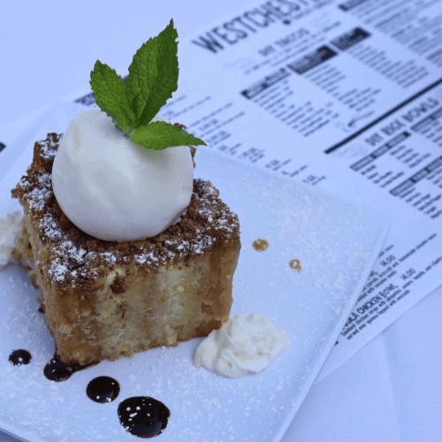 Rolled with cinnamon sugar and served with vanilla ice cream
