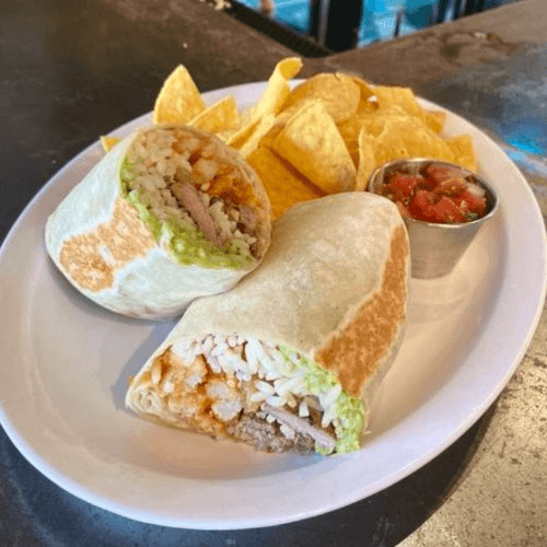 Marinated tequila chicken topped with cilantro, onions, jalapeño, avocado, & Pepper Jack cheese served on a flour tortilla
