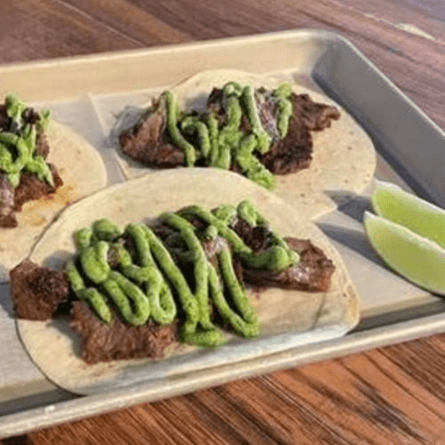 Steak topped with our house-made chimichurri sauce served on a soft flour tortilla
