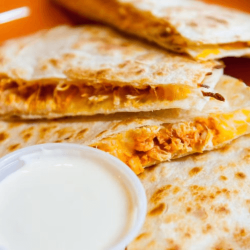 Shredded chicken, peppers, onions, and a Tex-Mex cheese blend served with a side of fajita sauce