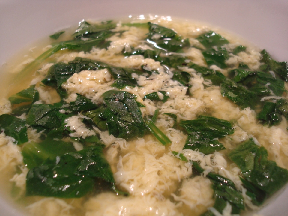 Italian - egg drop soup! Chicken broth with garlic and spinach then a hefty amount of grated cheese and eggs are mixed together and added to the soup making Stracciatella little shreds