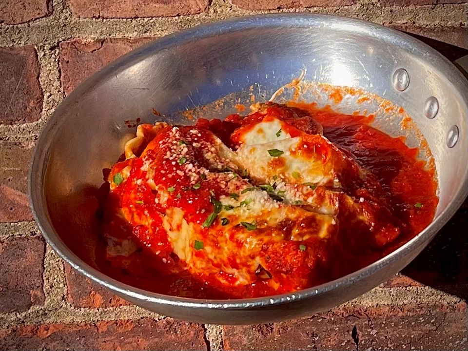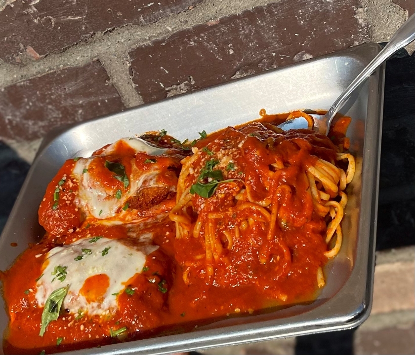 panko chicken cutlets, mozzarella, homemade marinara over imported linguine