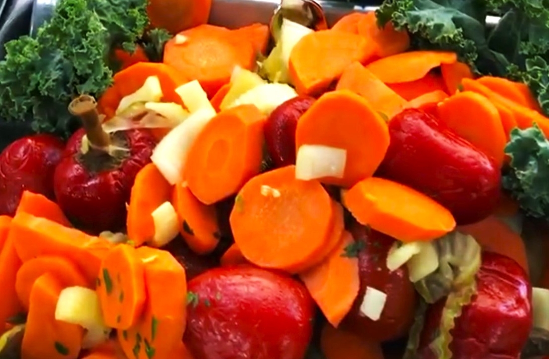 Spicy pickles, carrots, celery & hot cherry peppers