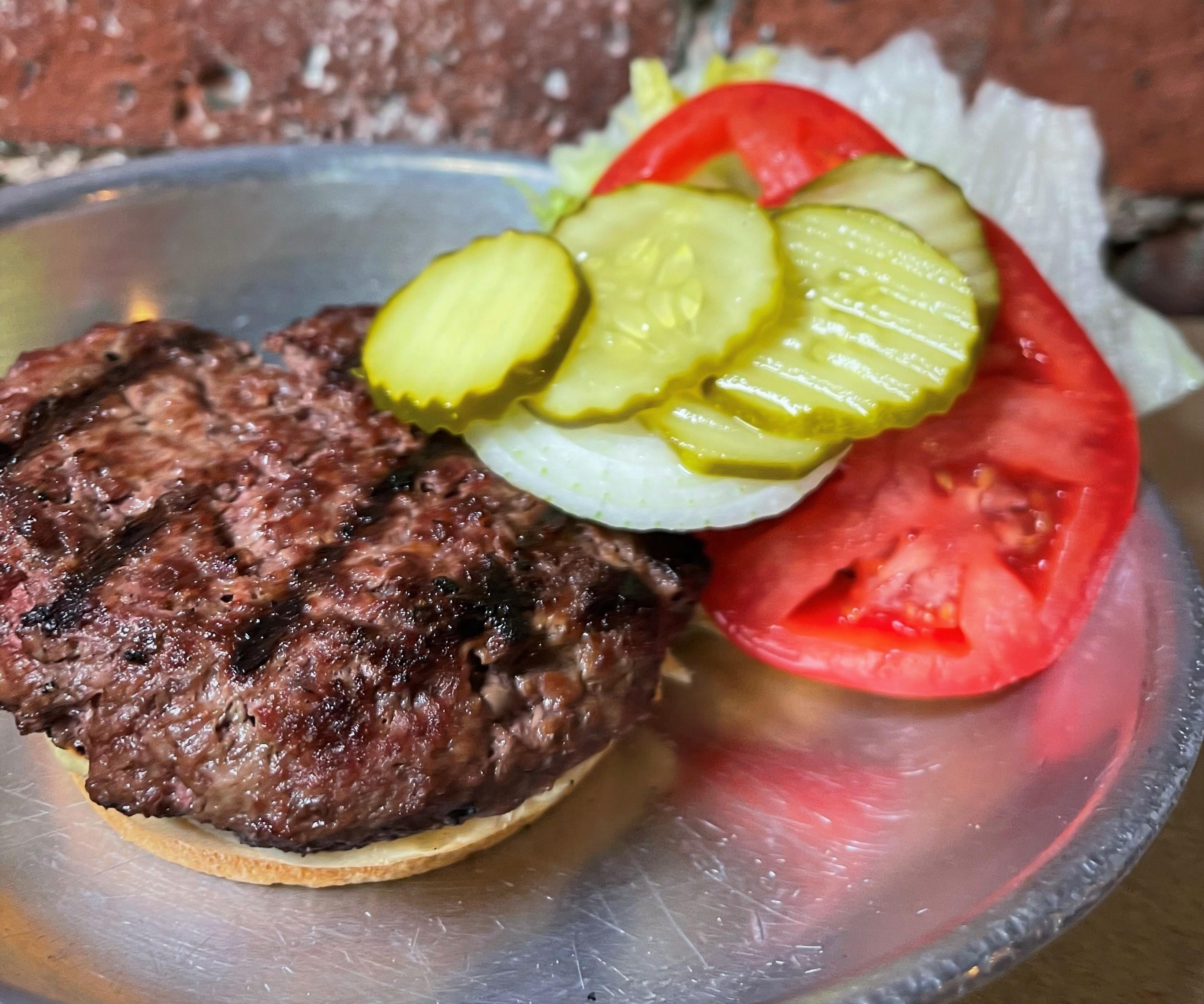 Our freshly ground beef our special blend of chuck, short-rib, naval & brisket.. topped with lettuce, tomato, onion & pickles on a Martin's potato roll
