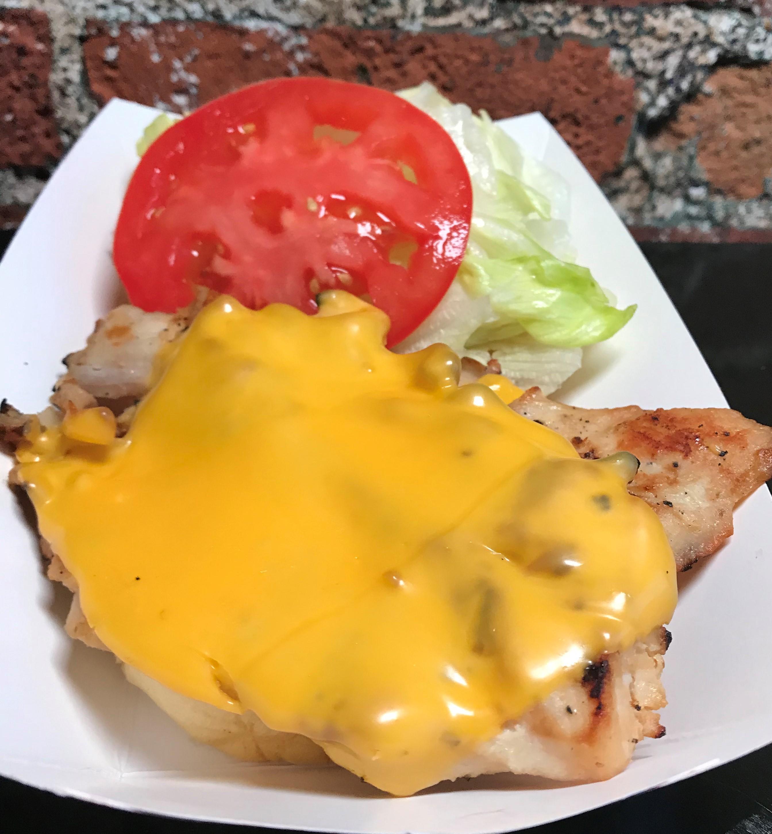 American cheese, lettuce, tomato, onion & pickles served on a Martin's potato roll