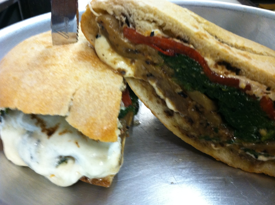 char-grilled eggplant, AJ's fresh Mozzarella, sautéed broccoli rabe & roasted red peppers, balsamic dressing on our homemade artisan flat bread