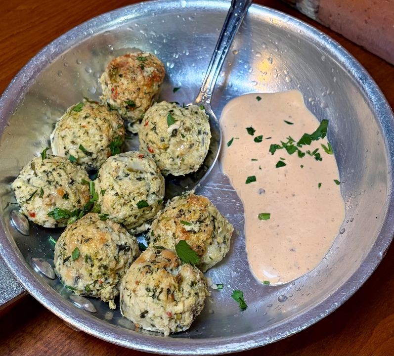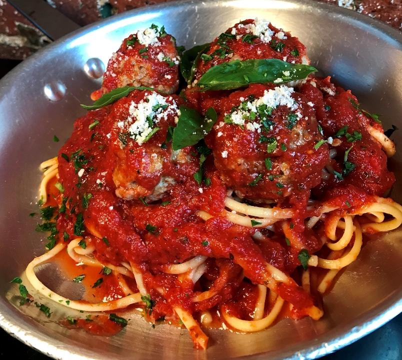 pork, veal, beef, pecorino & romano cheese, herbs, bread & eggs are in our meatballs served with homemade marinara over imported linguine