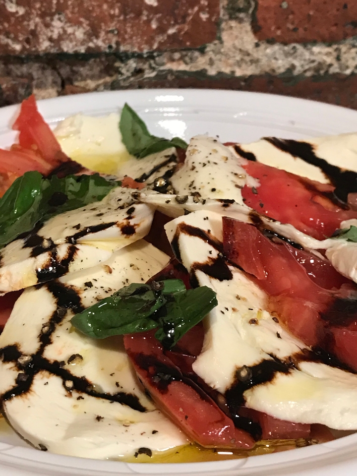 House Made Fresh Mozzarella with ripe tomatoes, basil, garlic, EVOO, balsamic reduction and homemade bread