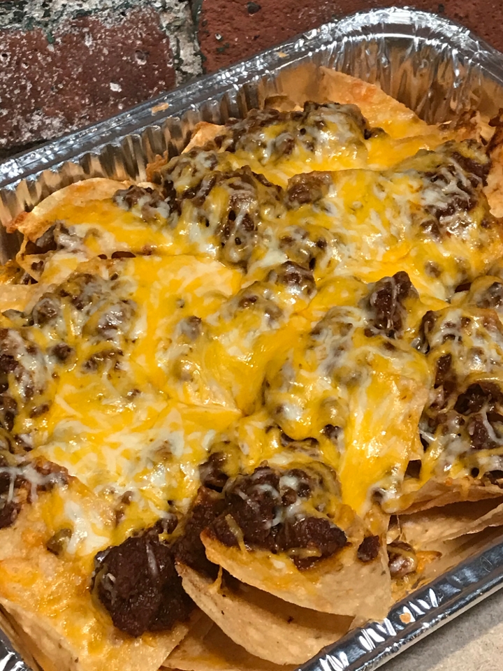 Freshly fried chips topped with Texas Chili, cheddar, monterey jack cheese, sour cream & jalapenos