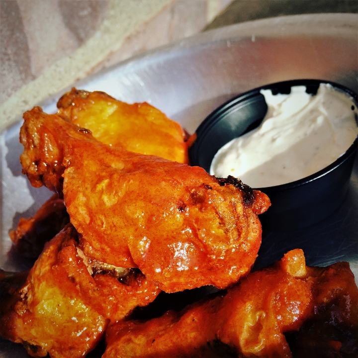 Jumbo chicken wings, dry rubbed, baked then fried to delicious crispiness served with homemade blue cheese dressing