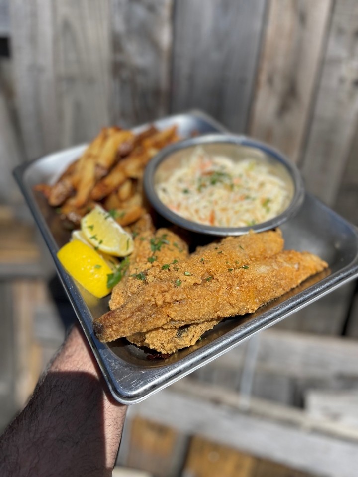Delicious fried Whiting in our seasoned flour served with hand cut fries & Mom's Cole Slaw