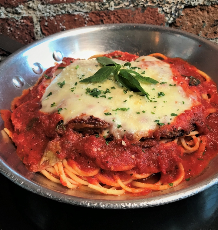 lightly battered eggplant, mozzarella, homemade marinara served over imported linguine with hmemade bread