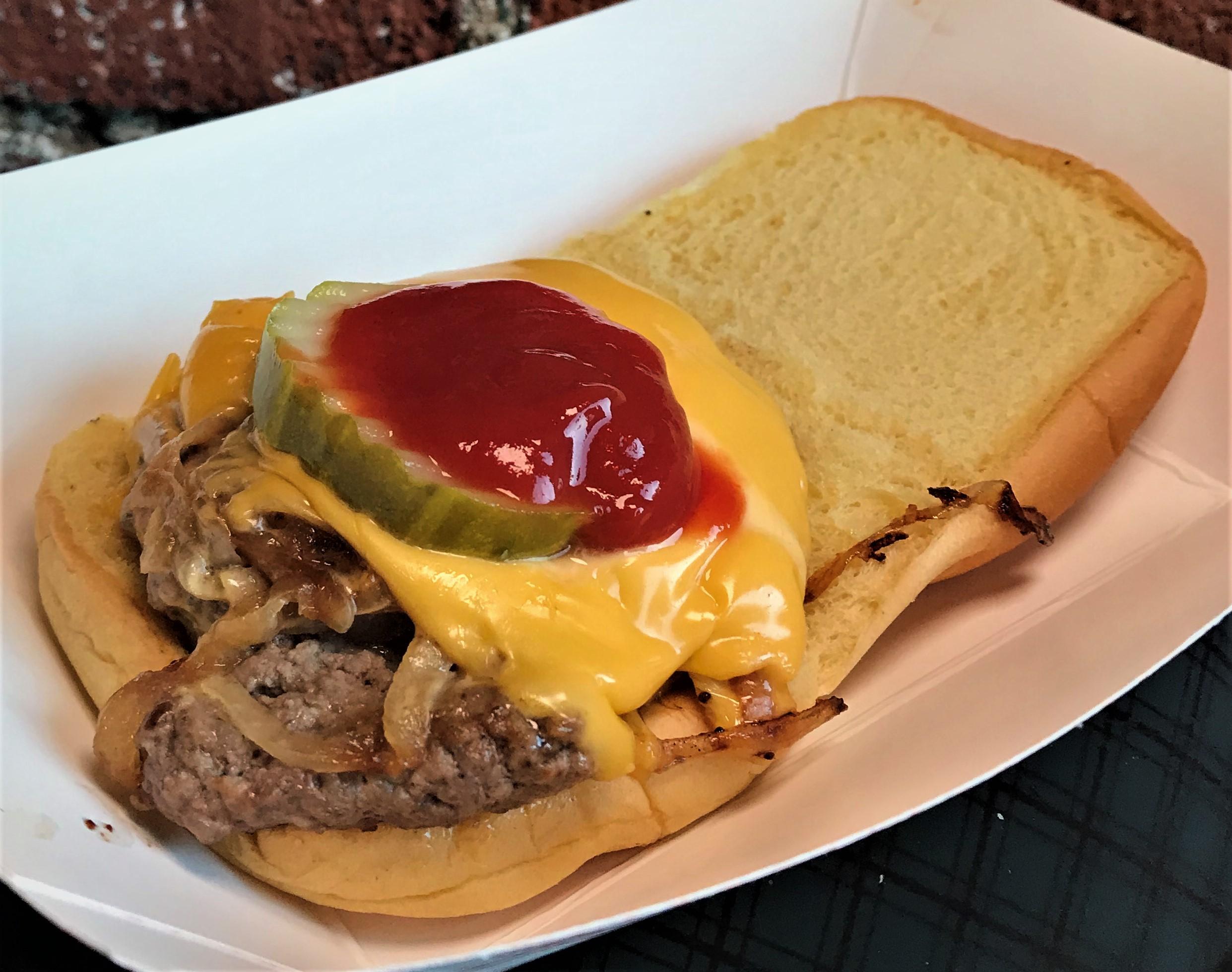 Fresh ground beef smashed with sweet onions topped with cheese, pickle and ketchup on a Martin potato roll