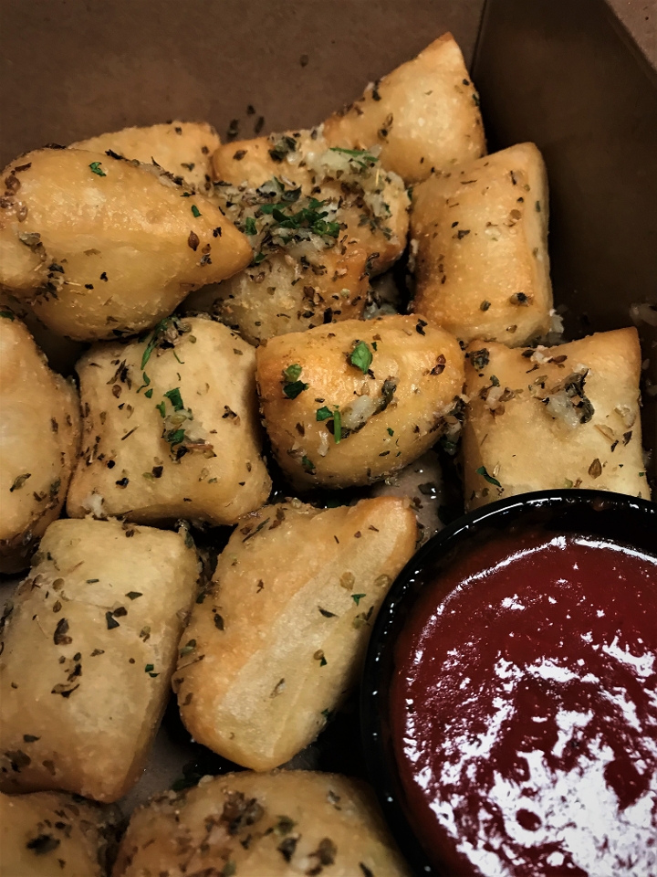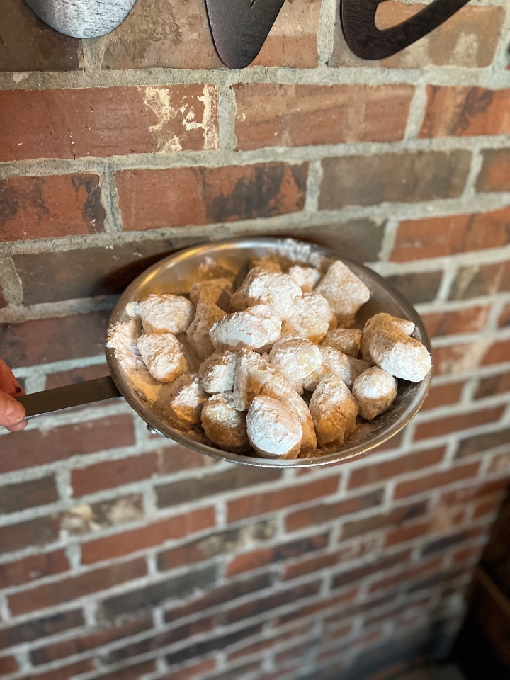Insanely delicious garlic donuts; fresh dough, fried and then baked with EVOO, garlic and seasonings 30 plus years still my daughters favorite!
