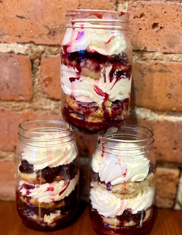 Homemade buttermilk biscuits, blueberry compote, fresh whipped cream