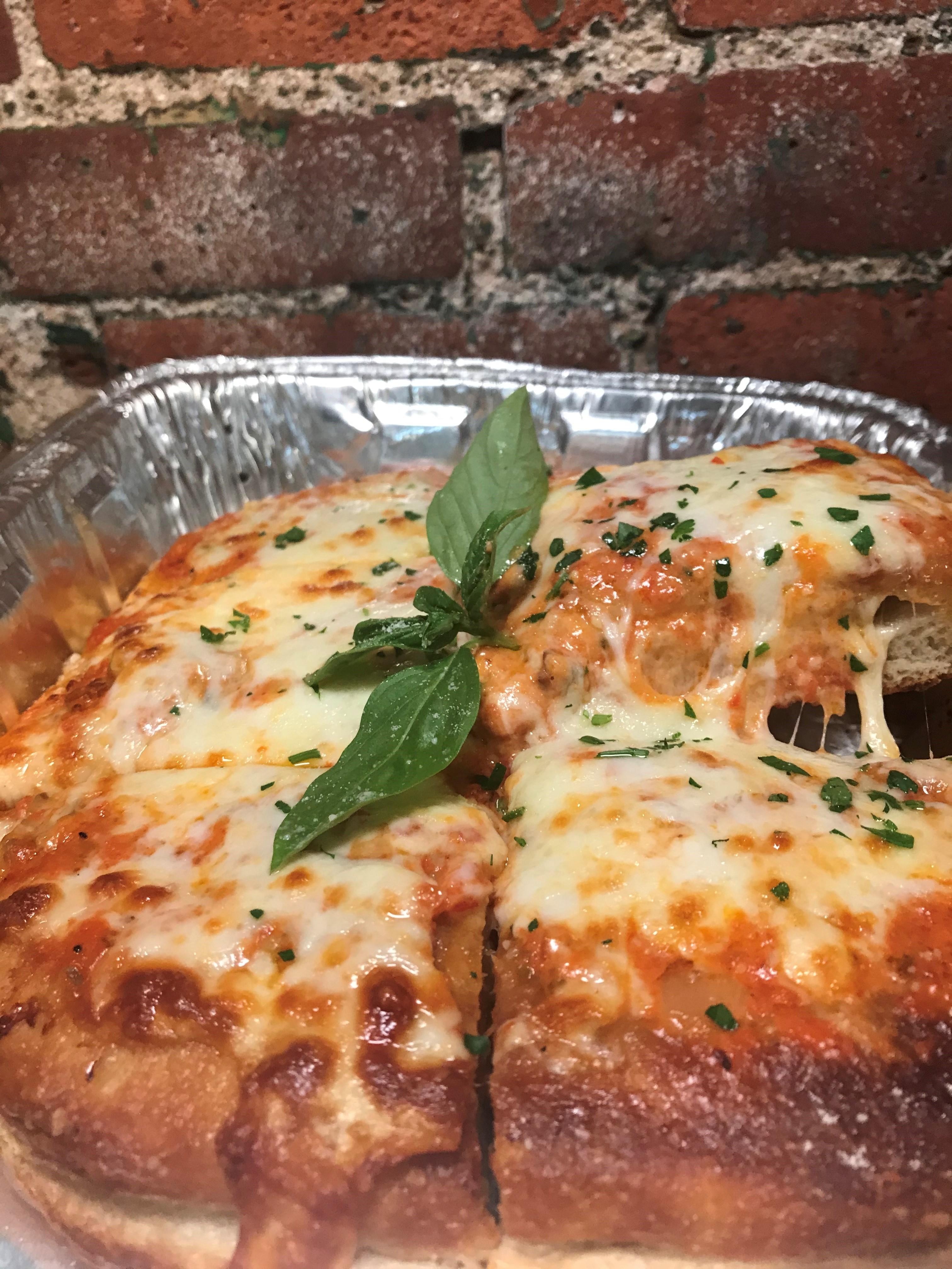 Our homemade dough, EVOO, marinara, mozzarella The Best Pizza in a 10 X 12 pan