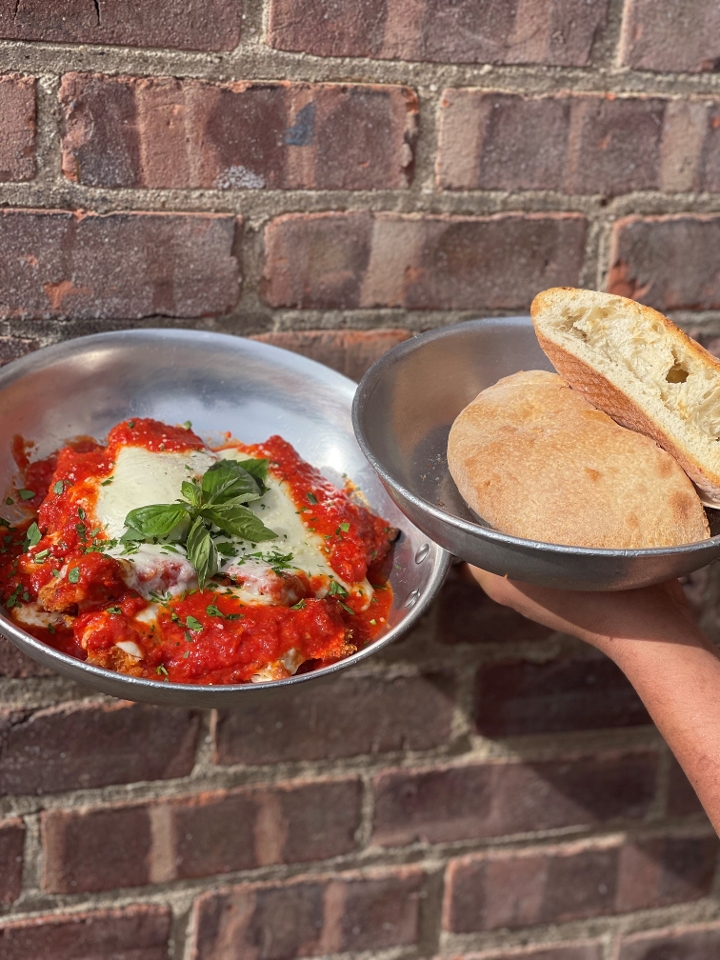 panko chicken cutlets topped with our fresh marinara & mozzarella with the bread on the side