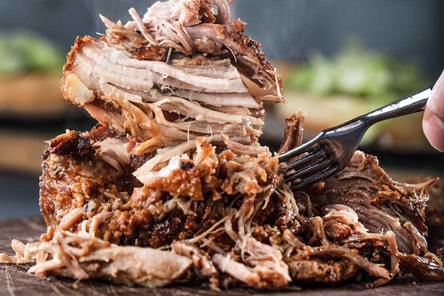 In-house smoked pulled pork, BBQ sauce on a Martin potato roll