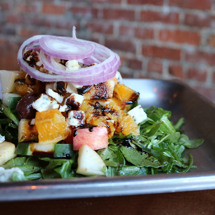 arugula, gorgonzola, tomatoes, oranges, apples, olives, onions, cucmbers & balsamic dressing